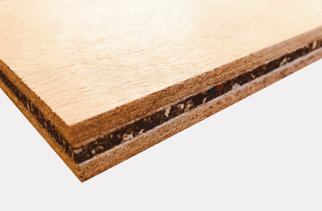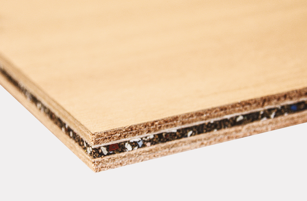 - Core of PU-bound recycled rubber (650 kg/m³)