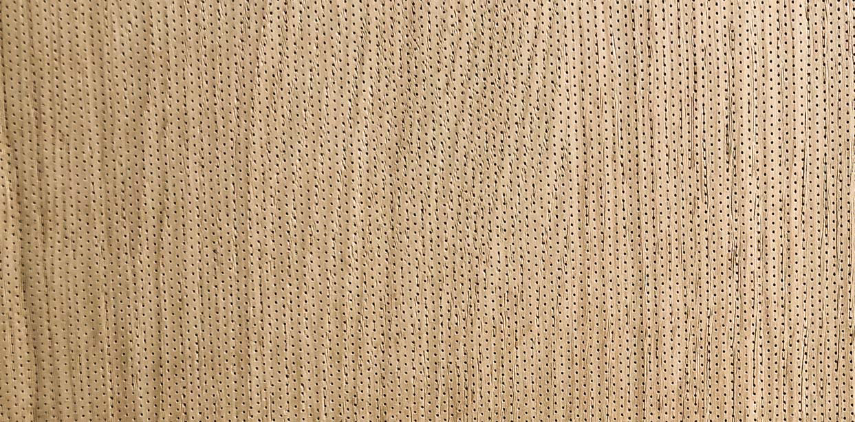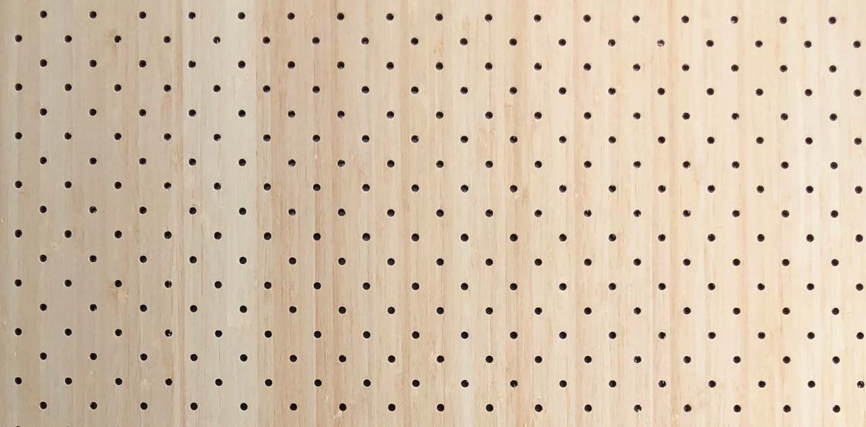 VSR dB Panel Perfo is a panel with perforations. It can be MDF (standard, moisture-resistant, or fire-retardant) or plywood, with or without a veneer or HPL coating. The back is covered with a black fire-resistant fabric.