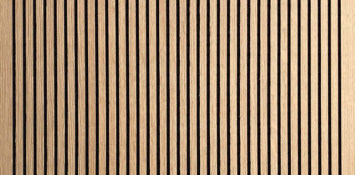 VSR dB Panel Slot is a panel with a 2, 3, or 4 mm wide slot on the visible side and a Ø5 or Ø8 mm perforation on the back. The backing is generally made of MDF or black MDF (other backings available upon request). The backing is covered with a black fire-resistant fabric.